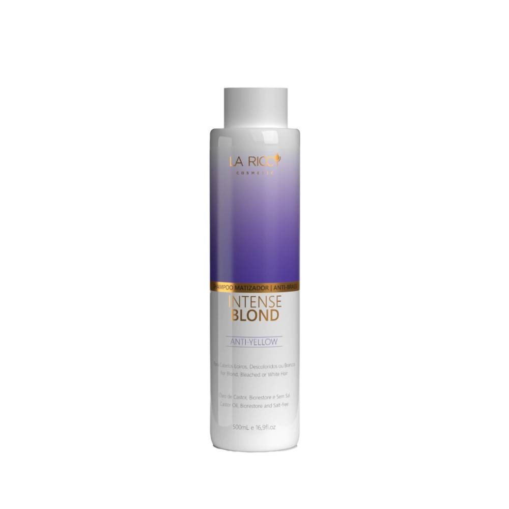 O Shampoo Matizador Intense Blond La Riccy 500ml combate o tom amarelado e realça a tonalidade dos cabelos loiros, grisalhos ou descoloridos. Enriquecido com pigmentos violeta, limpa suavemente sem ressecar, devolvendo brilho e luminosidade. Ideal para manter o loiro sempre frio e radiante.