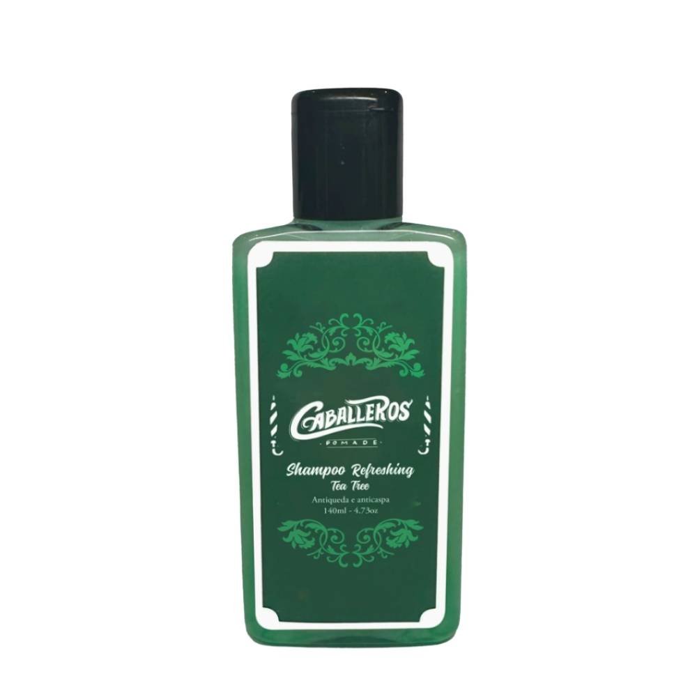 O Shampoo Refreshing Tea Tree Caballeros possui uma fórmula desenvolvida para combater a queda, controlar a oleosidade e prevenir a caspa, mantendo o couro cabeludo equilibrado e saudável. Com pH balanceado, ele limpa sem agredir e preserva a saúde dos fios. É enriquecido com ativos como Tea Tree, hortelã-pimenta e hidrolato de alecrim, que atuam diretamente no fortalecimento capilar e no controle da oleosidade. É recomendado para cabelos oleosos e tratamento antiqueda, contendo em sua formulação Óleo essencial de melaleuca (tea tree), Hidrolato de alecrim, Extrato de Aloe Vera, Óleo essencial de hortelã pimenta, Óleo essencial de Mentha, Lactato de Mentila e CBA. Para usar, agite antes, coloque uma pequena quantidade na palma da mão no banho e espalhe nos cabelos molhados, massageando o couro cabeludo. Deixe agir por um minuto e enxágue, repetindo o processo diariamente para melhores resultados.: